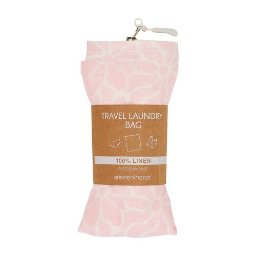 Keep your travels organised and stylish with the Annabel Trends Laundry Bag in the delicate Pink Petal Floral design. Made in Australia from 100% linen, this travel essential separates clean clothes from dirty, making it perfect for the gym, weekend getaways, or longer trips.