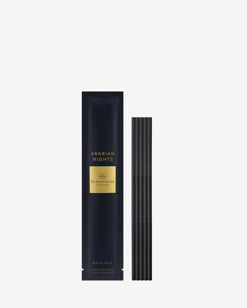 Extend the luxurious atmosphere of your home with the Arabian Nights White Oud Replacement Scent Stems™. Designed as a refill for your Scent Scene diffuser, this set ensures your signature fragrance continues effortlessly, keeping your space beautifully scented.