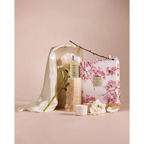 Inspired by a peaceful stroll under moonlight, this elegant set blends soft florals with soothing textures to create the ultimate unwind experience. The delicate fragrance of jasmine, magnolia, and ylang-ylang gently fills your space, while luxurious satin essentials add a touch of comfort and self-care.