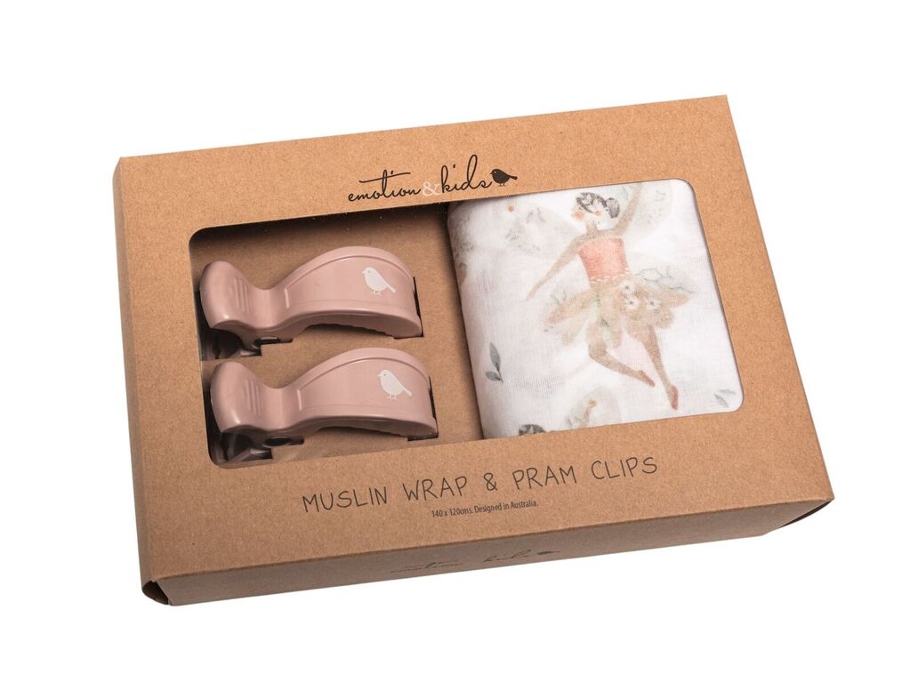 Create a magical and practical baby essential with the Fairy Muslin & Dusty Pink Pram Clip Set by Emotion & Kids. Thoughtfully designed, this beautiful set combines a dreamy fairy-themed muslin wrap with coordinating dusty pink pram clips, making it the perfect gift for new parents.