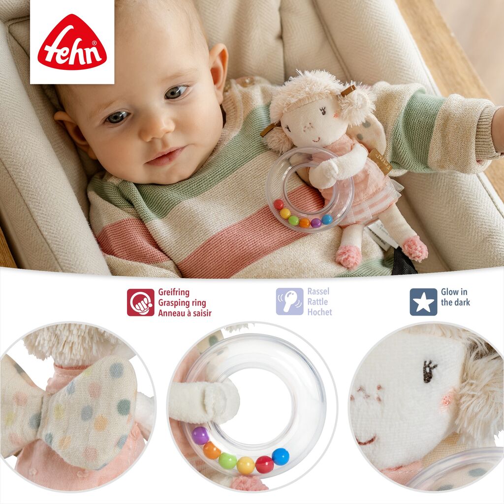 Delight your little one with the fehnNATUR® Rattle Ring Fairy, a soft and cuddly sensory toy designed to engage, entertain, and comfort babies and toddlers. Its gentle rattle, glow-in-the-dark accents, and lightweight design make it the perfect companion at home or on the go.