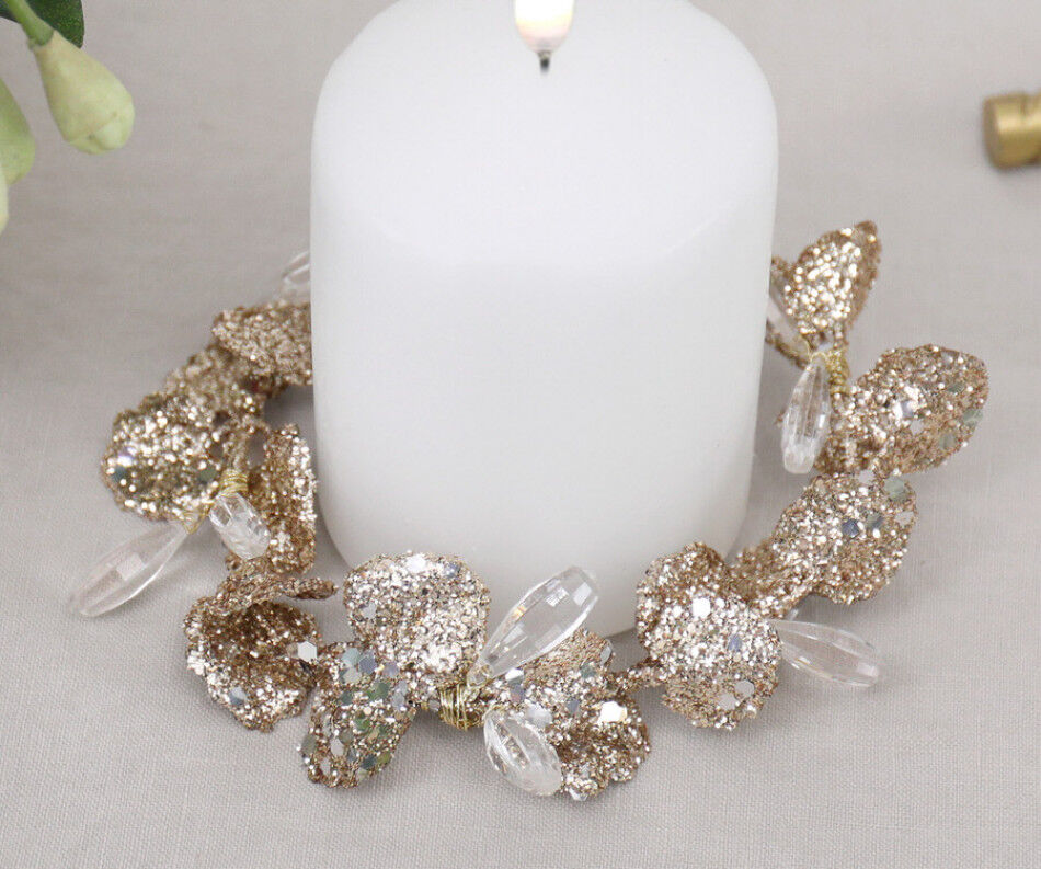 Add a touch of festive sparkle to your décor with this Glitter Mini Wreath in Gold. Lightweight and beautifully finished with shimmering gold glitter, this petite wreath is perfect for styling on Christmas trees, gift wrapping, table settings, door handles or decorative hooks.
