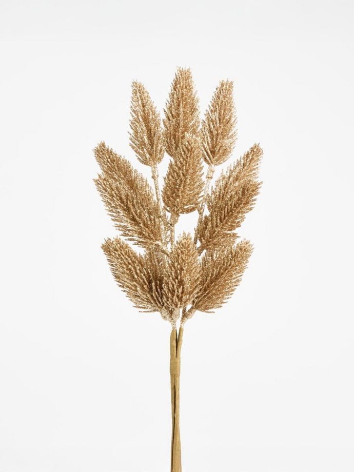 Keywords: mini pine bunch, gold glitter pine spray, Florabelle Living Christmas décor, festive floral stems, gold holiday decorations, Christmas styling accessories.