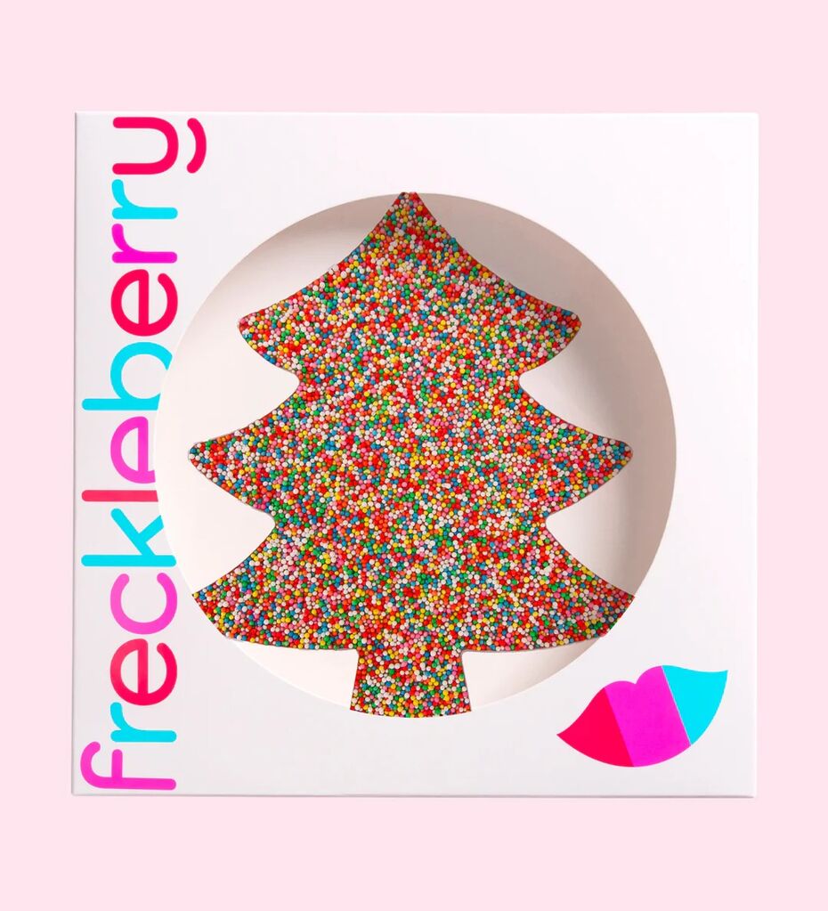 Bring extra sparkle to the festive season with our Christmas Giant Freckle Tree! Handmade from rich Belgian milk chocolate and topped with colourful sprinkles, this show-stopping treat makes a perfect Christmas gift or a decadent indulgence for yourself.