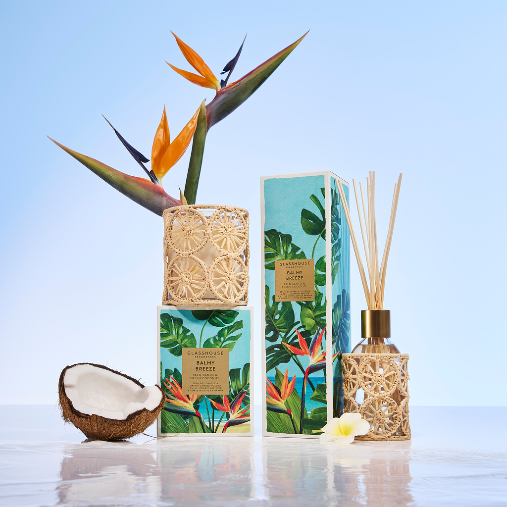 Bring the warmth of a sunlit tropical escape into your home with this smooth, beachy fragrance. Smoky Palo Santo entwines beautifully with lush Australian Frangipani and soft, creamy Coconut, creating a scent that feels relaxed, golden and effortlessly inviting.
