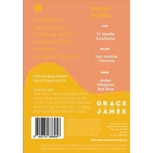 Experience a gentle and uplifting scent wherever you roam with the Grace and James Bloom Collection Felt Air Freshener. Perfect for your car, wardrobe or linen cupboard, this beautifully designed felt ring releases a constant aromatic bloom, customised by you.