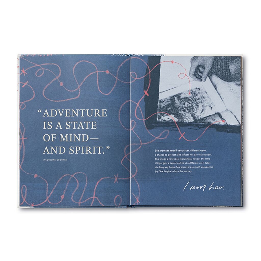 I Am Her is a beautifully designed keepsake book filled with inspiring quotes, poetic reflections, and meaningful prompts that invite an inspiring woman to pause, reflect, and honour the beauty within herself. Each page encourages her to listen to her deepest wishes, celebrate her strengths, and boldly share her dreams with the world.