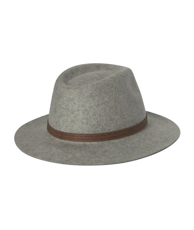 This soft felt ladies hat from Kooringal in grey marle is the perfect addition to any outfit.  The wool felt is soft and perfect for keeping you warm in the colder months. UPF 50+ sun protection.