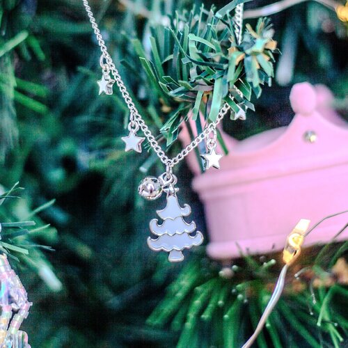 Celebrate the holiday season with the Lauren Hinkley Enchanted Christmas Tree Necklace! Featuring a white Christmas tree charm topped with a silver star, a delicate silver bell, and charming white stars along the chain, this festive necklace is perfect for kids 3+ and pairs beautifully with any outfit. Adjustable, safe, and full of holiday magic.