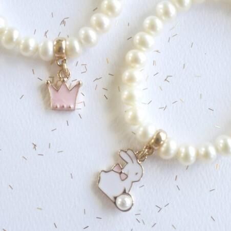 Gorgeous hand-threaded freshwater pearl bracelet makes for a special gift and matches beautifully with our Bunny Necklace, but also looks fantastic paired with our Bunny Charm Bracelet for a truly luxurious look.