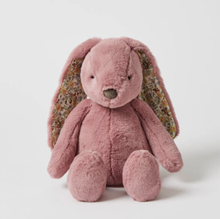 This lovable Floral Raspberry Bunny is the perfect cuddly companion for newborns and toddlers. Crafted from ultra-plush fabric with beautifully detailed floral ears and child-safe trimmings, it’s irresistibly soft and made for endless snuggles. The beanie-weighted base allows the bunny to sit upright during playtime or when styled on a shelf, while its floppy ears are perfectly sized for little hands to carry along on everyday adventures.