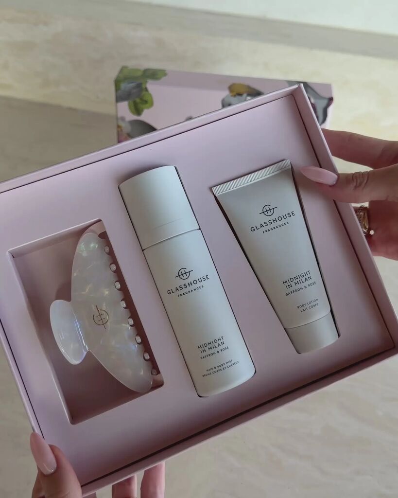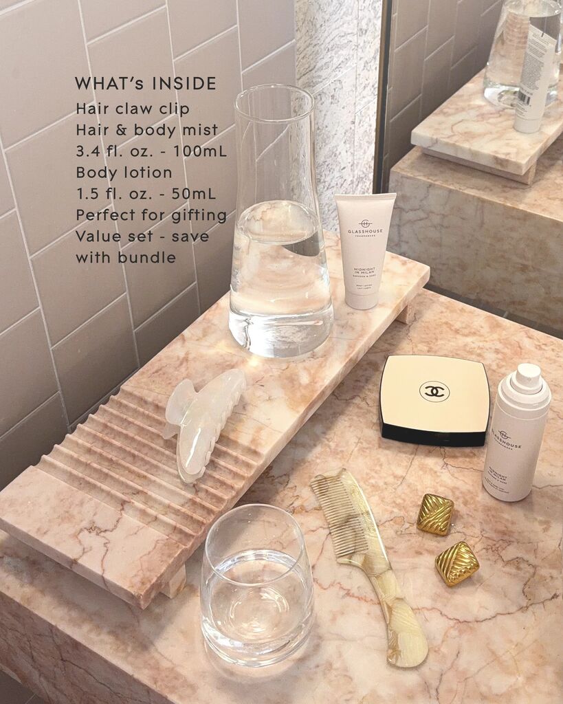 Complete with a chic shell-toned claw clip for effortless styling, this travel-ready set blends practicality with a touch of glamour. Perfect for on-the-go indulgence or as a thoughtful gift, each piece works in harmony to create a lingering, luxurious fragrance experience.