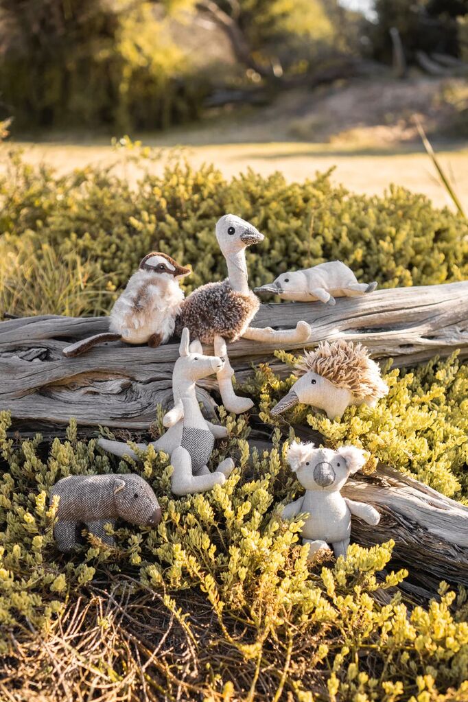 Wombats usually keep to themselves, digging tunnels and pooping cubes, but Mini Wally prefers company, burrowing beneath the blankets for cuddles and musical jam sessions. Catch him crib-side with the other Aussie Animals, dancing to the beat of his own rattle.