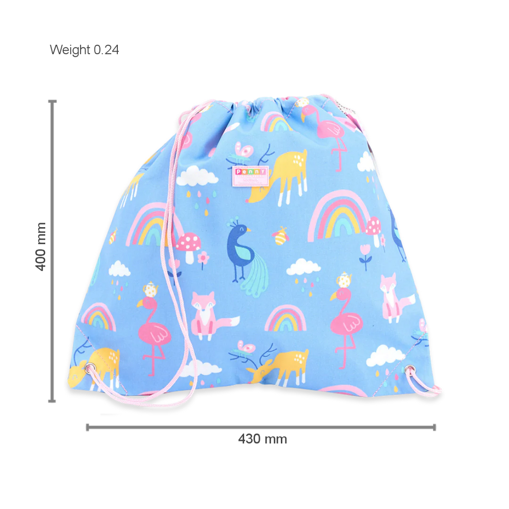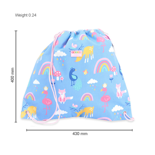 • Slip in your child’s belongings, show them how to fasten the drawstring toggle, and off they go!