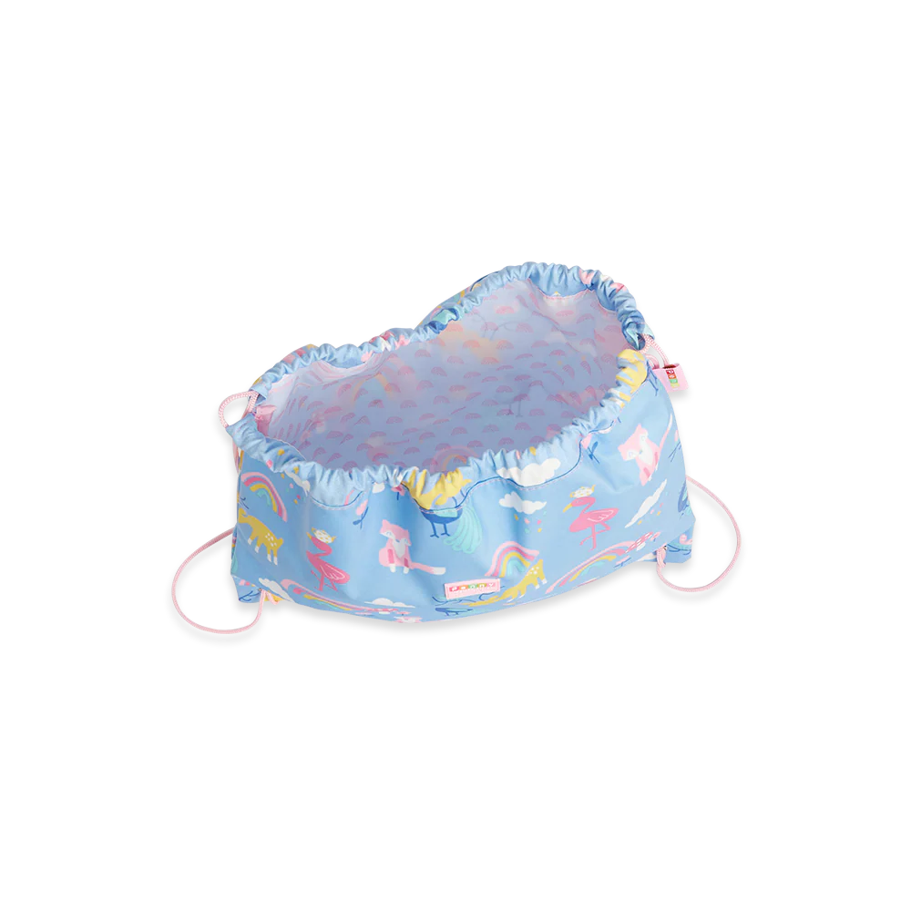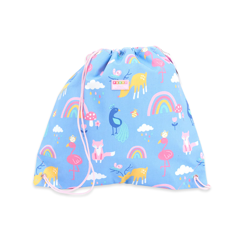 Use it for library books, toy storage, collecting laundry, trick-or-treating, as a Santa sack, or carrying bathers and a towel for swimming lessons. This roomy drawstring bag comfortably fits our drink bottles and both sizes of our Bento Boxes, and features a fun silicone name tag charm!