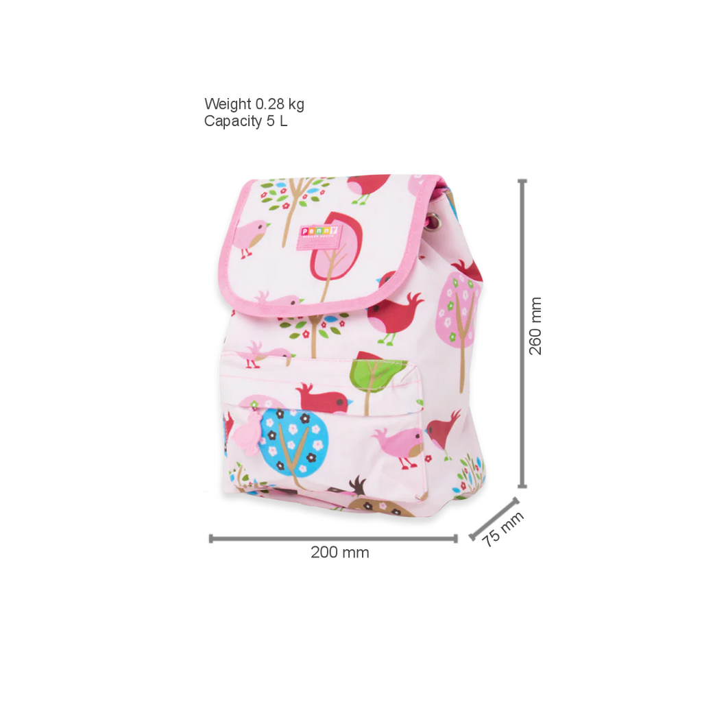 The Penny Scallan Top Loader Backpack – Chirpy Bird is the perfect first backpack for toddlers aged 2–4 years. Ideal for daycare, outings, and family adventures, this compact backpack is roomy enough to hold a Mini Bento Box, drink bottle, and a favourite toy.