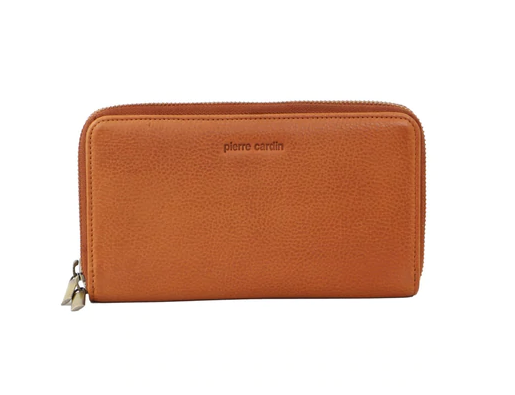Ladies Double Zip Wallet - Cognac by Pierre Cardin