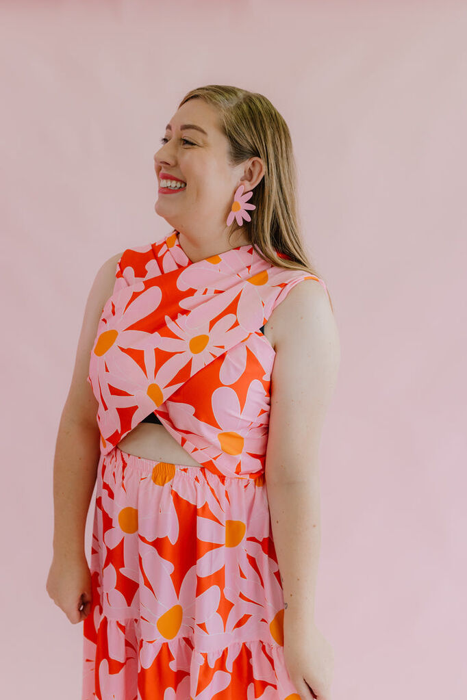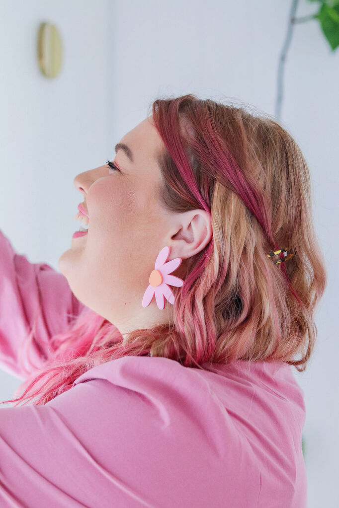 Crafted from lightweight acrylic with surgical stainless steel posts, they offer standout impact without the heaviness. Their playful pink and orange colour combo makes them the perfect finishing touch for everyday outfits, parties, or festival looks.