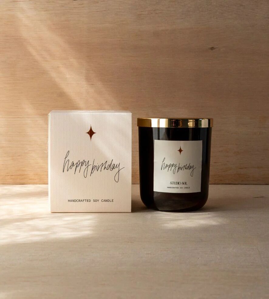 Celebrate their special day with the Studio Sol Classic Sentiments Candle | Happy Birthday—a thoughtful gift designed to make birthdays even more memorable. Featuring a simple yet meaningful message, this candle is the perfect way to show you care and add a warm, personal touch to any celebration.