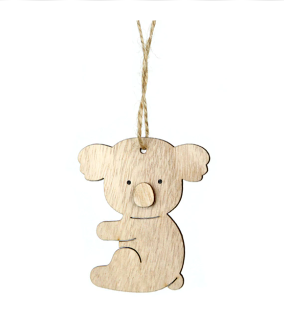 Super cute timber hanging Koala decorations on natural string. Top seller and you can see why!