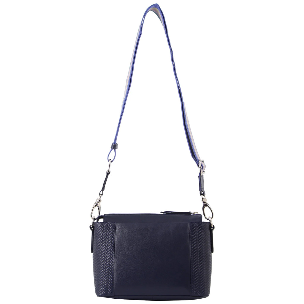 Woven Embossed Cross Body Bag with Webbing Strap in Navy by Pierre Cardin
